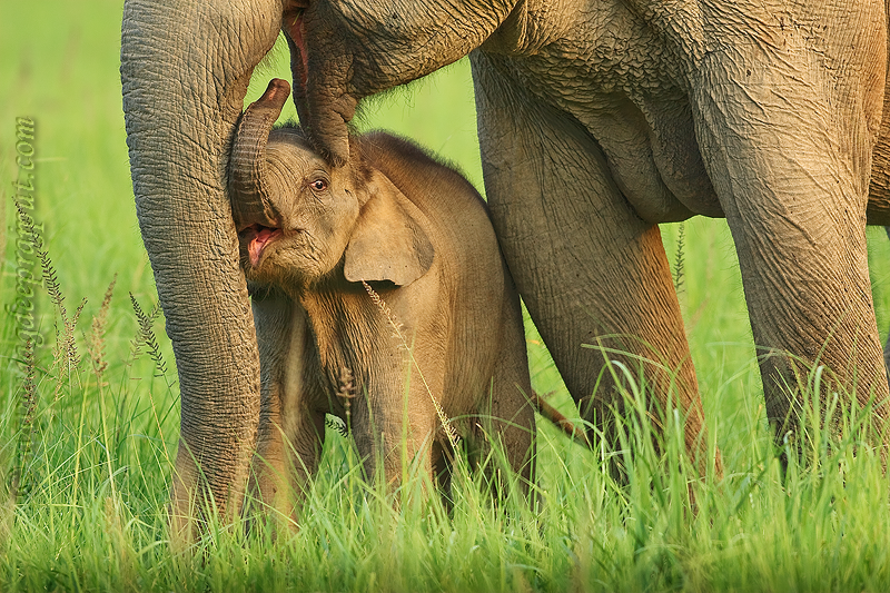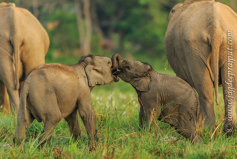 Asian Elephant calf sharing a touching moment, Corbett National Park, India.