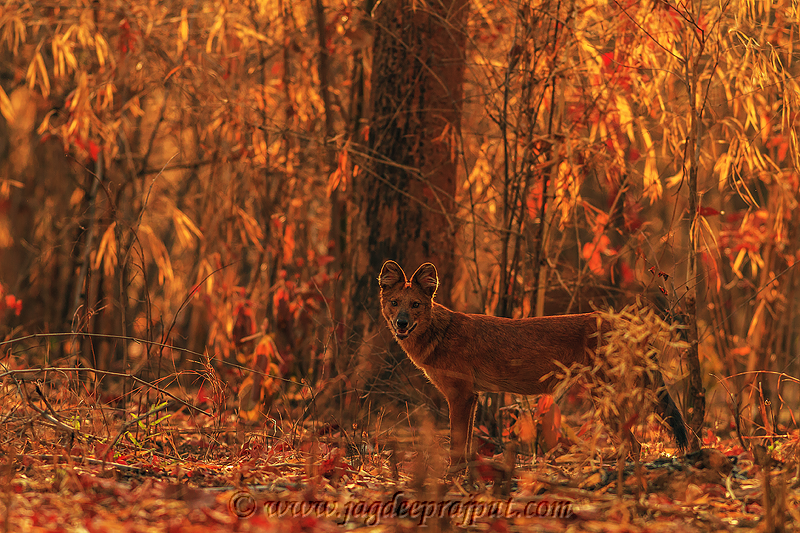 Wild Dog in the bamboo forest, Tadoba National Park, India.